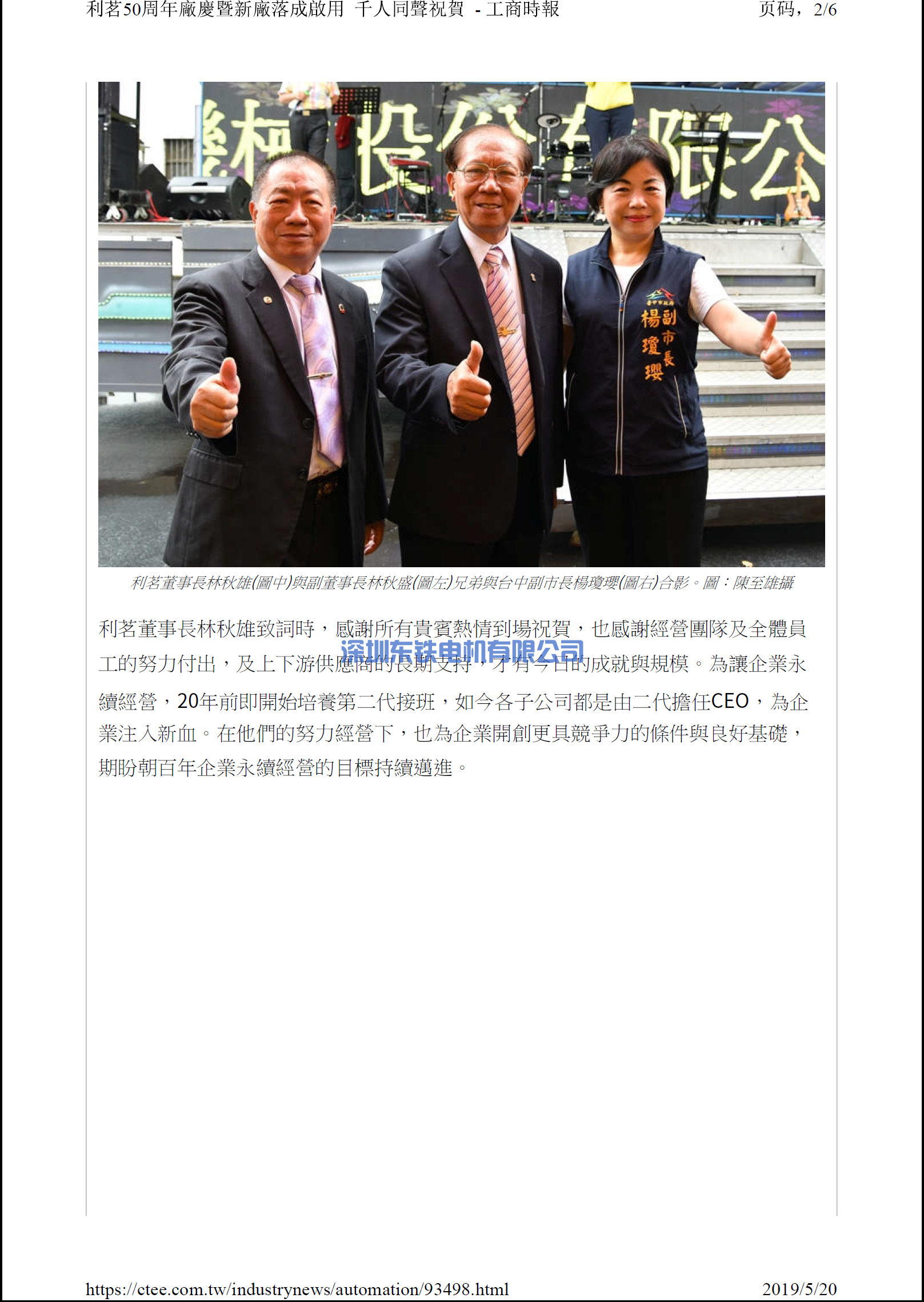 利茗50周年廠慶暨新廠落成啟用千人同聲祝 賀